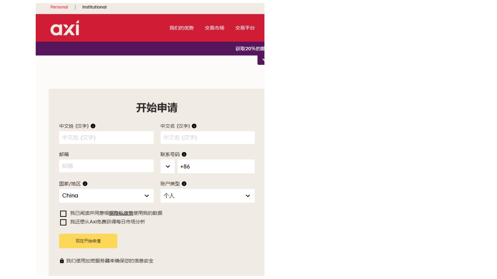 第2步:输入姓名,手机号,邮箱后点击"现在开始申请"。
