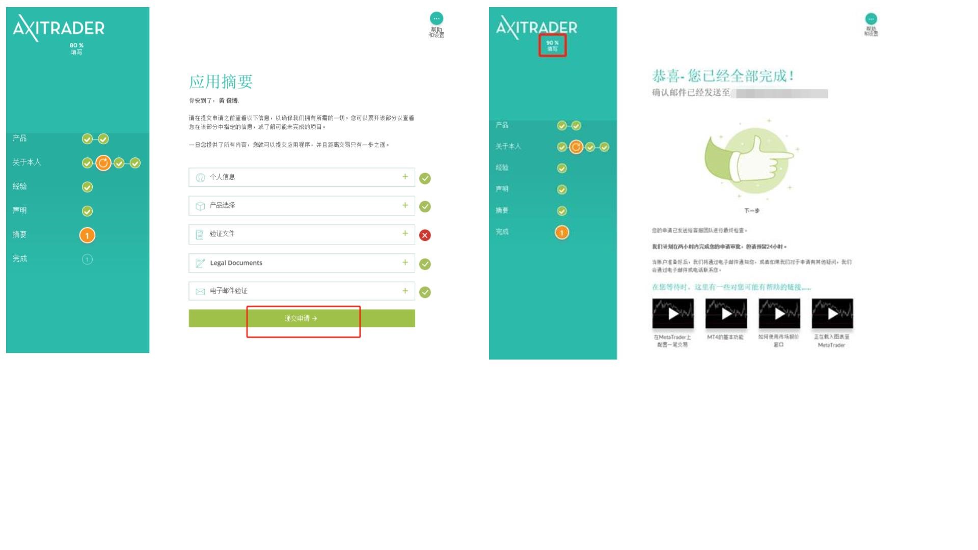 信息全部填写完成后点击"递交申请",百分比进度显示90%即代表全部完成。等待后台审核出账户,一般2小时内即可审核完毕。