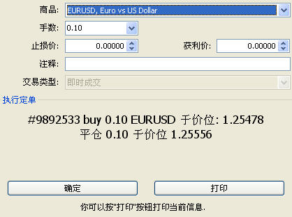 5、于价格 1.25478 下单成功。